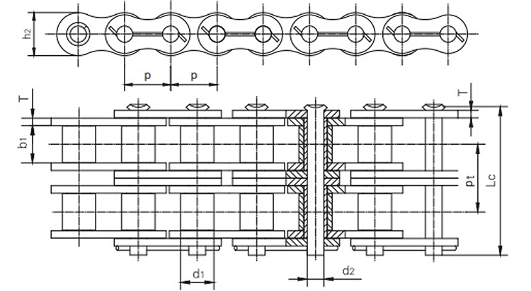 - Ланцюг приводний роликовий дворядний підвищеної міцності та точності (шплінтований) 2НП-44.45-418 (ГОСТ 21834-87), 140-2 (ANSI B29.1M)Відрізок – 5м.